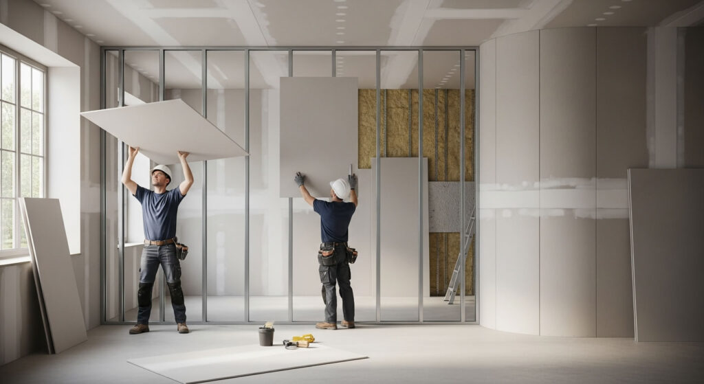 Mais leveza, rapidez e flexibilidade para seu projeto! O drywall permite criar ambientes modernos com ótimo isolamento acústico. Solução inteligente para sua reforma!
