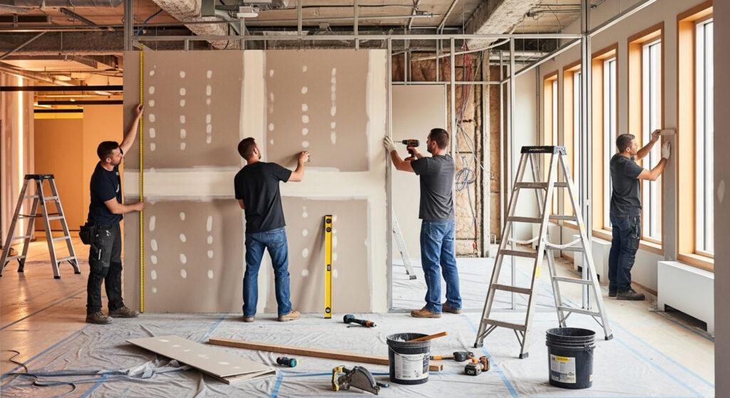 Transforme seu espaço comercial com agilidade e mínimo de sujeira. Desenvolvemos projetos sob medida em drywall para lojas, escritórios e estabelecimentos.